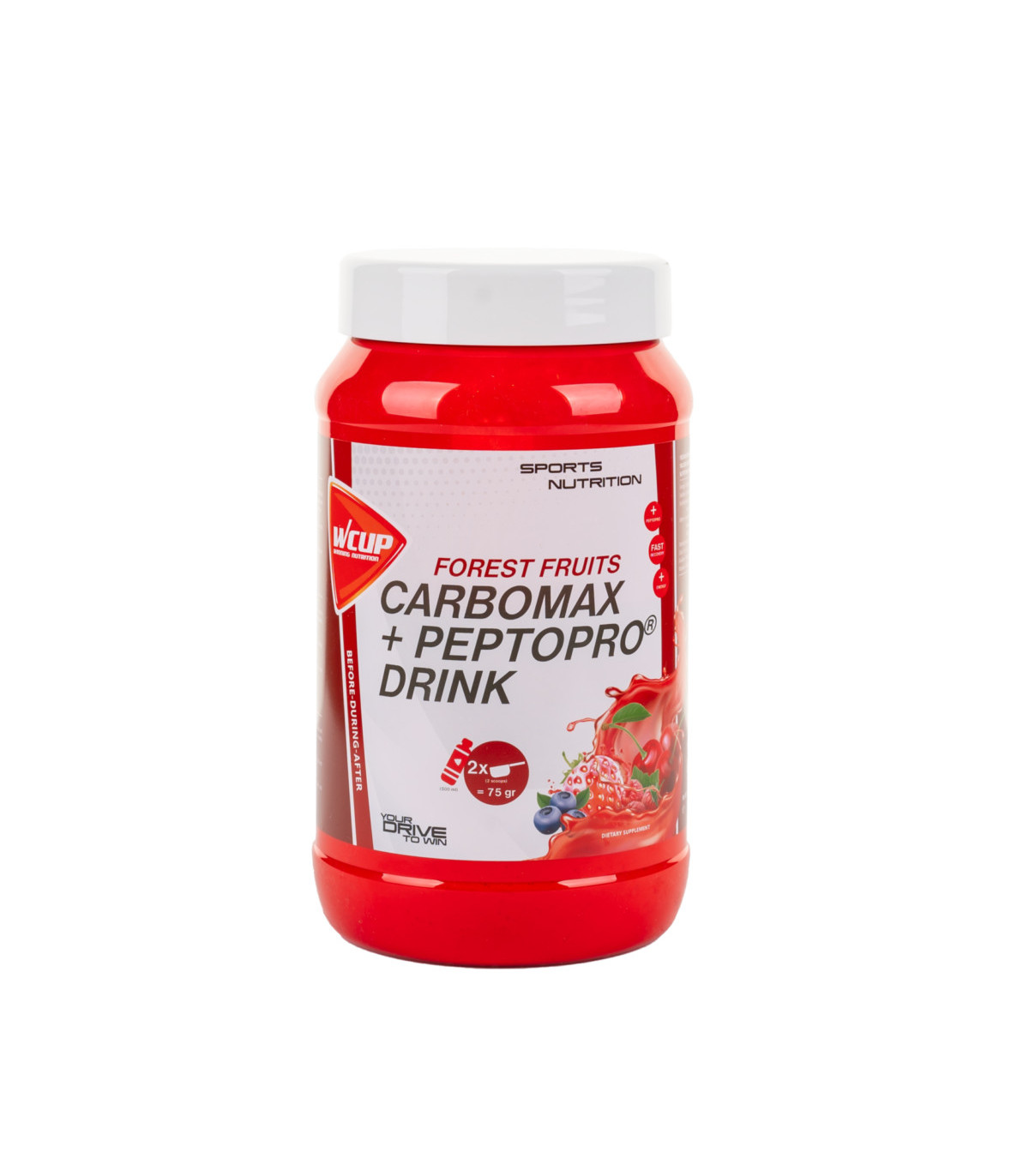 Boisson d'effort Carbomax Fruits des Bois (900g) : mélange de glucides et PeptoPro® pour une énergie stable, une endurance accrue et une récupération accélérée.