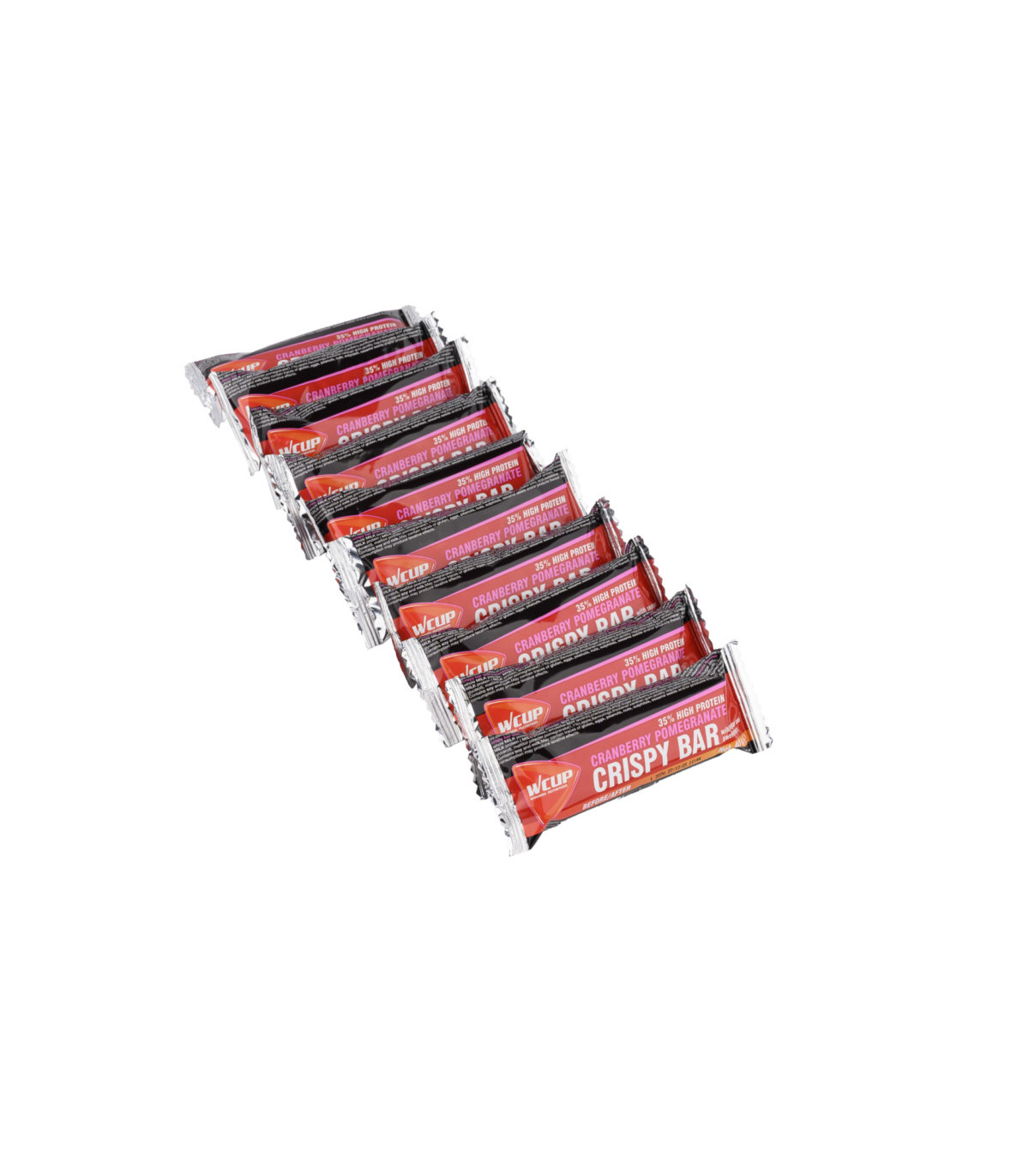 Pack 20x40g WCUP Crispy Cranberry-Grenade : Énergie stable, texture croquante et fruitée, faible en graisses. Idéal pour l'endurance et le plaisir à l'effort.