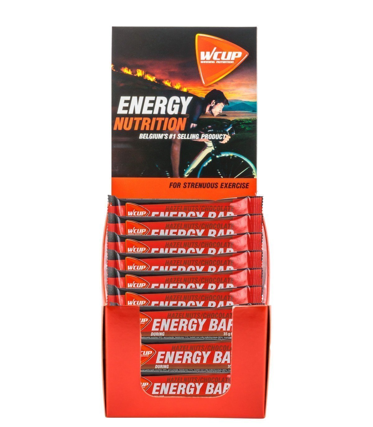 Boîte de 20 barres WCUP Energy Choco-Noisette (35g) : l'énergie compacte et gourmande à portée de main. Idéal pour un apport en glucides stable et digeste.