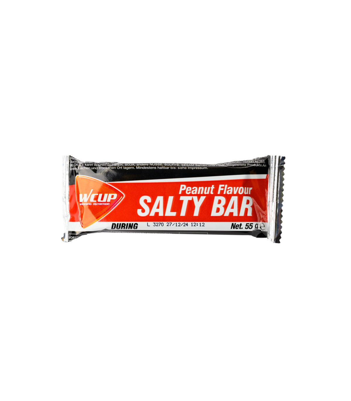WCUP Energy Bar Salty Peanut 55g : l'équilibre parfait entre glucides et sel. Idéale pour l'endurance intense, la prévention des crampes et le plaisir salé.