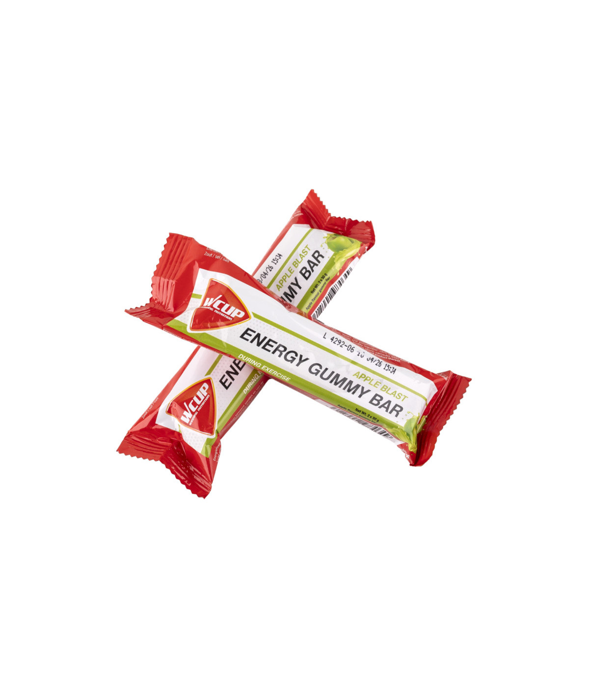Boîte de 24 gommes WCUP Energy Apple Blast (60g) : le compromis idéal entre gel et barre. Énergie immédiate, facile à mâcher et saveur pomme rafraîchissante.