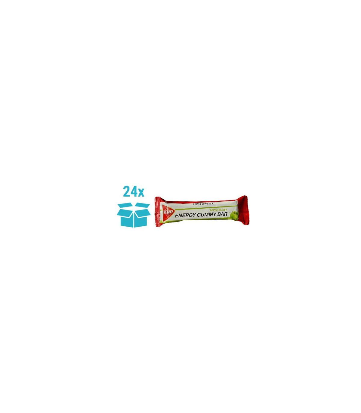 Chaque barre de gomme apporte une charge glycémique immédiate pour répondre aux besoins énergétiques des muscles sollicités. Le conditionnement en pack de 24 unités permet de disposer d'un stock constant pour la planification d'entraînements réguliers ou de compétitions. Le format de 60 g est conçu pour être facilement fractionnable, permettant à l'athlète de moduler son apport en glucides selon l'intensité et la durée de sa séance. Sa composition est étudiée pour assurer une assimilation rapide, minimisant ainsi le temps de digestion.