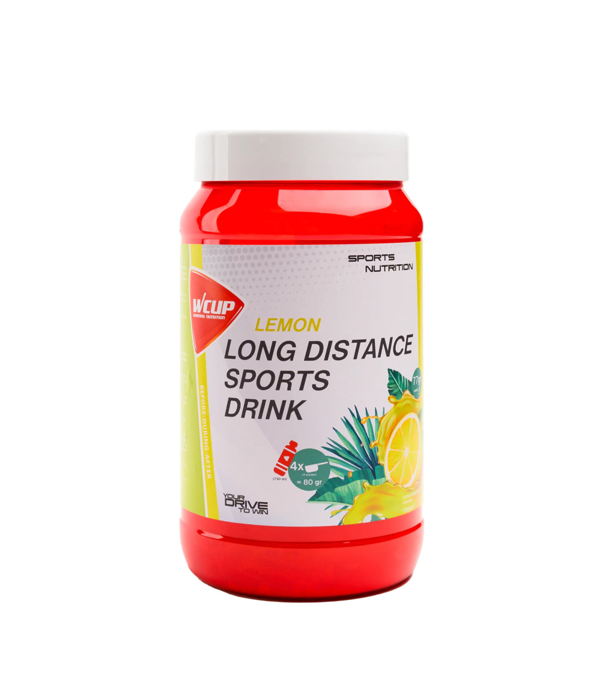 Boisson WCUP Long Distance Citron 1040g : pour des efforts de plus de 3h. Mix glucides-protéines pour une énergie durable et une protection musculaire optimale.