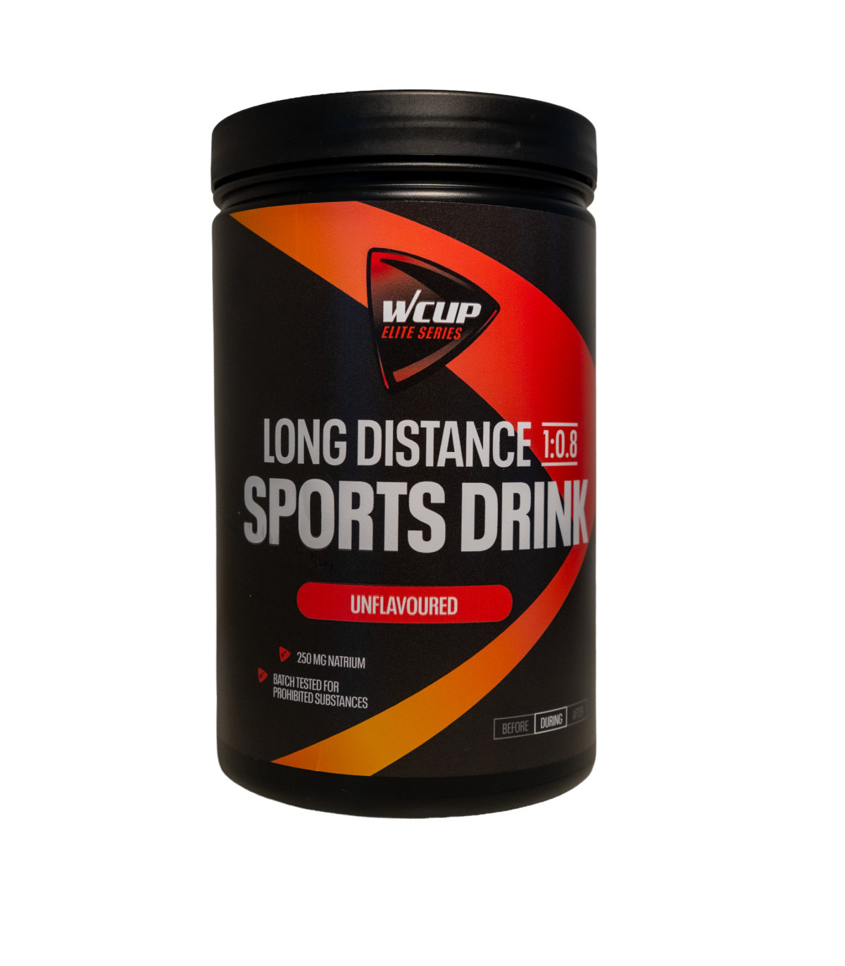 Boisson WCUP Long Distance Unflavoured : ratio 1:0.8 (maltodextrine/fructose) pour un apport énergétique maximal (jusqu'à 90-120g/h) sans saturation de goût.