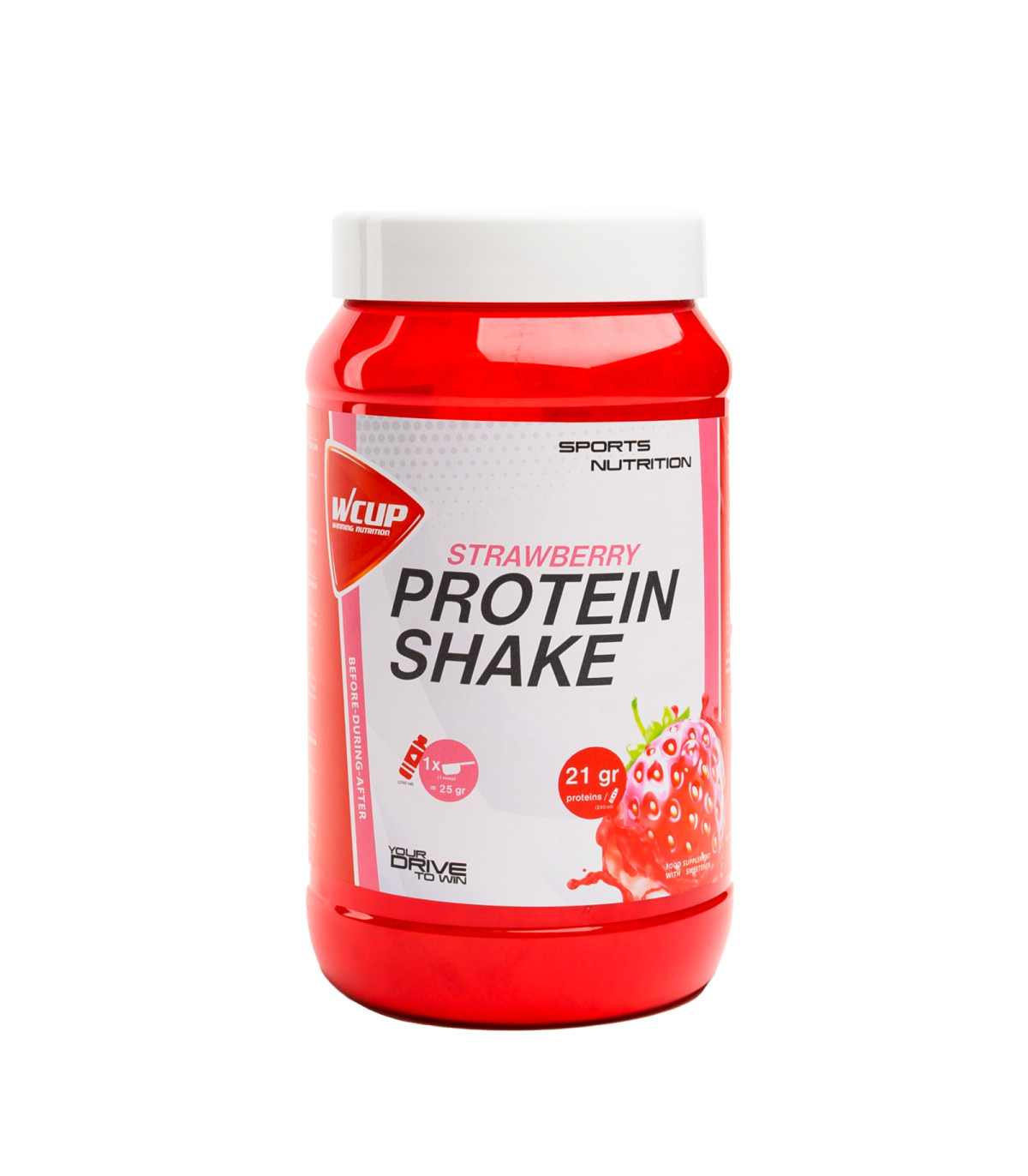 WCUP Protein Shake Fraise 600g : haute teneur en protéines pour la construction musculaire sèche. Idéal pour la récupération structurelle saveur fraise.