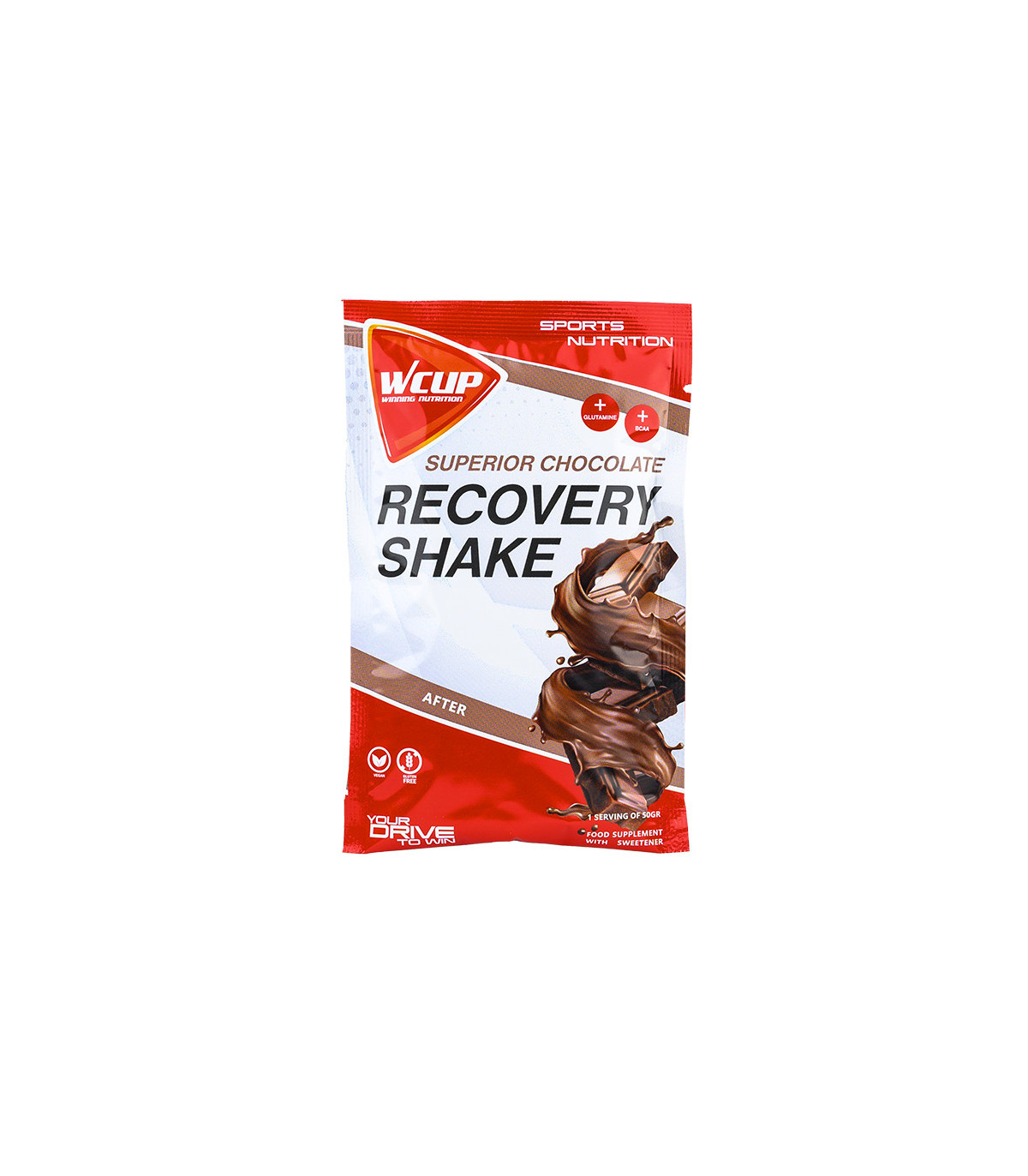 Sachet 50g WCUP Recovery Shake Superior Choco Twist : haute teneur en protéines et glucides pour une réparation musculaire optimale après l'effort intense.