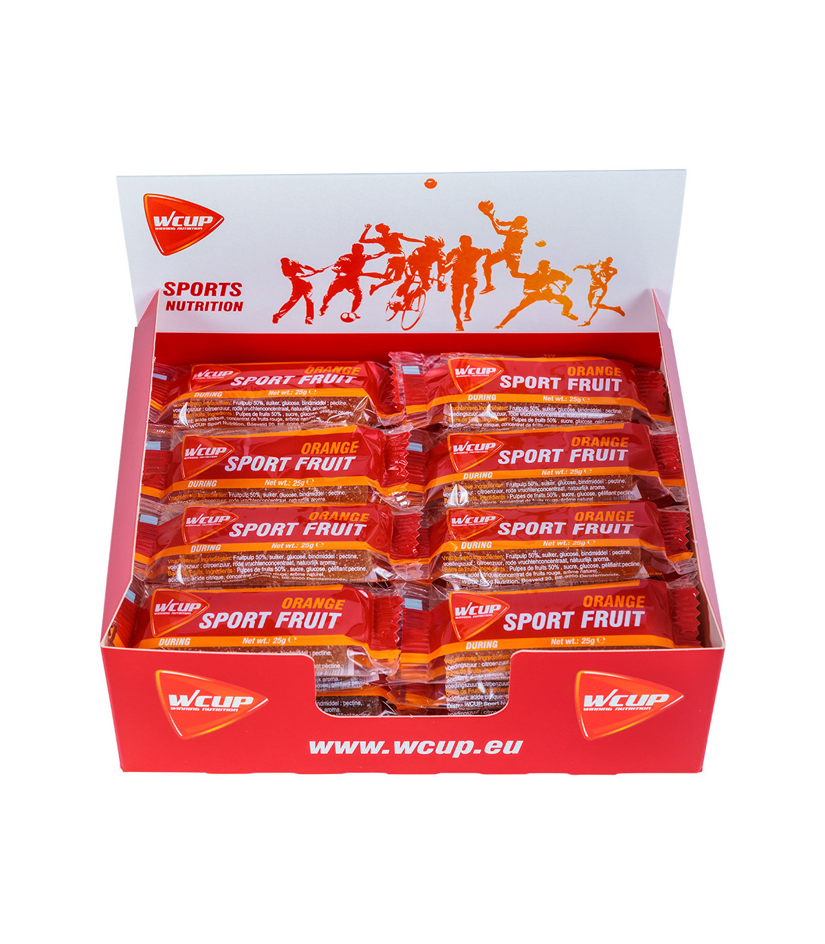Pâte de fruits WCUP Orange (32x25g) : Énergie immédiate, ratio 2:1 glucose/fructose, 50% pulpe de fruit. Idéal pour l’effort intense. Digestion facile.