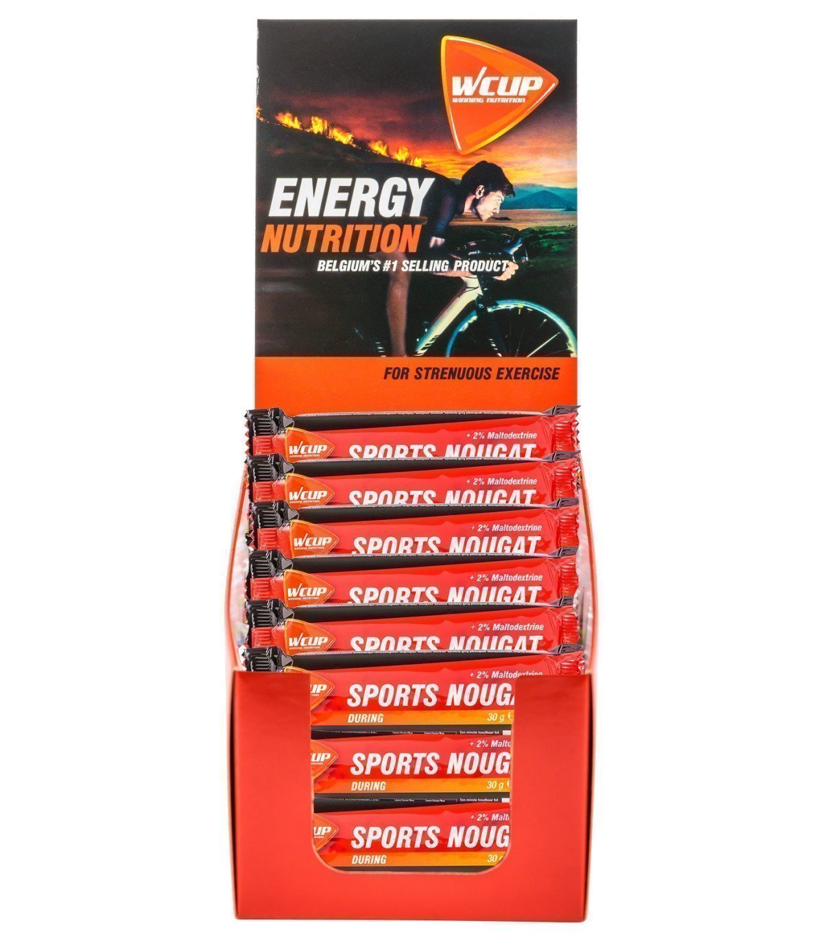 Boîte de 20 unités WCUP Sport Nougat (30g) : une source d'énergie solide et fondante pour varier vos ravitaillements. Digeste, pratique et riche en glucides.