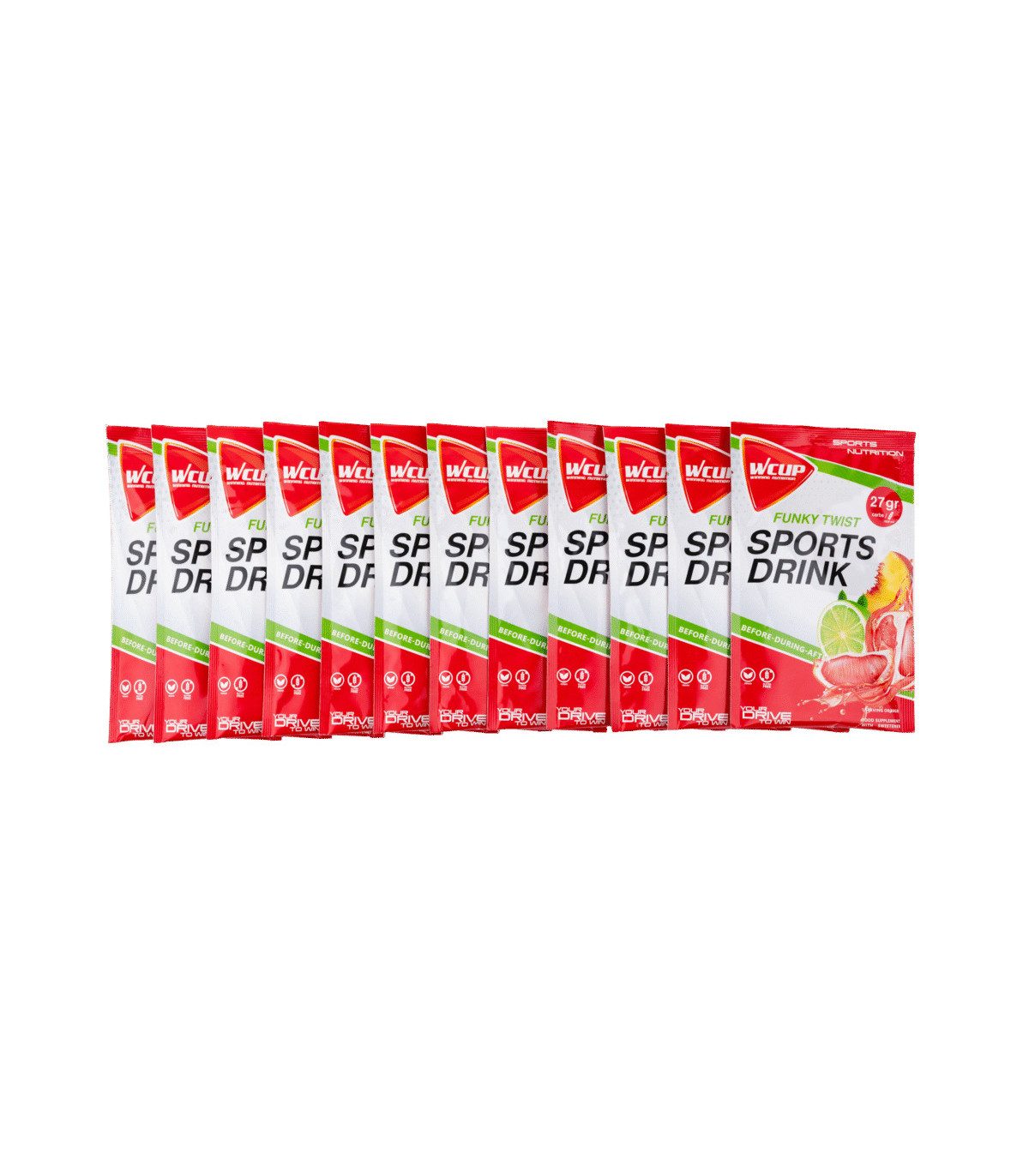 Pack 24 sachets (30g) WCUP Sports Drink Citron : boisson isotonique aux glucides et minéraux pour une énergie stable et une hydratation optimale à l'effort.