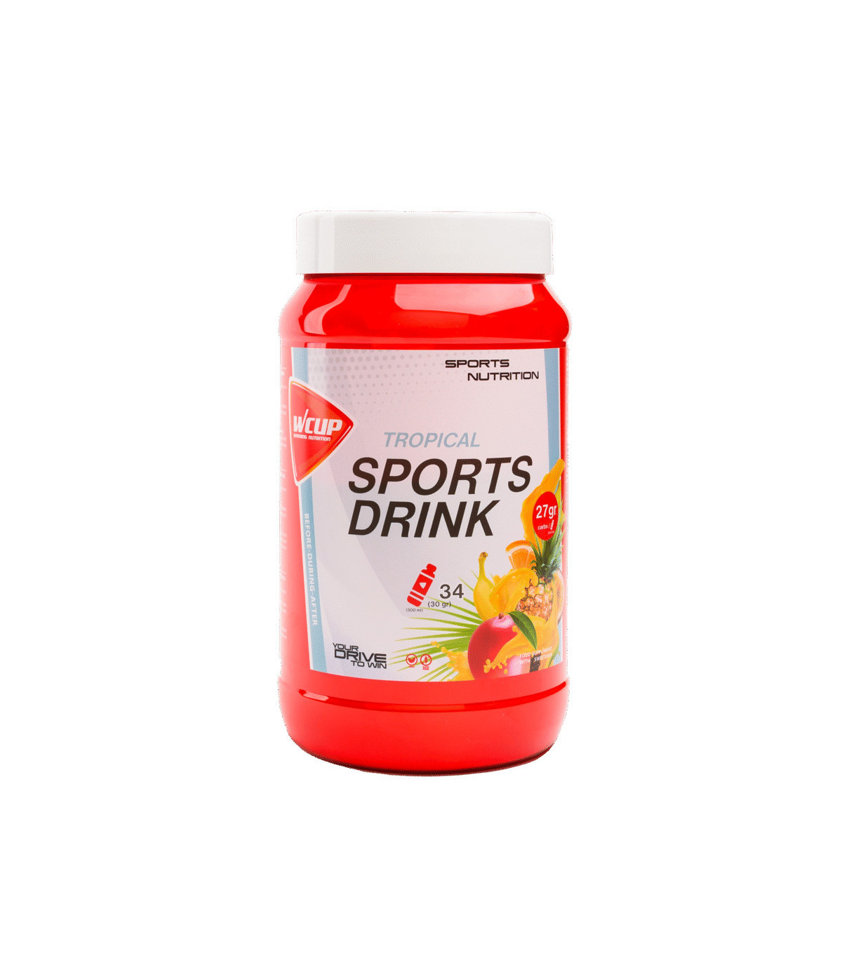 Boisson isotonique WCUP Sports Drink Tropical 1020g : recharge glucidique et minéraux pour une énergie constante. Format économique idéal pour les sportifs.