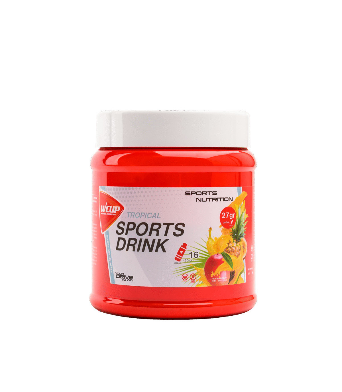 Boisson isotonique WCUP Sports Drink Tropical 480g : équilibre parfait entre glucides et électrolytes pour maintenir l'énergie et l'hydratation durant l'effort.